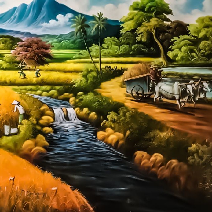 Lukisan Sawah Padi Wallpaper - Jual Lukisan Pemandangan Panen Padi Sawah Terasering Dengan Gunung 85x135 Kab Tabanan Juragan Lukisan Tokopedia. Hasan pergi ke sawah untuk menanam padi. Dia mempunyai sawah padi yang sangat luas.